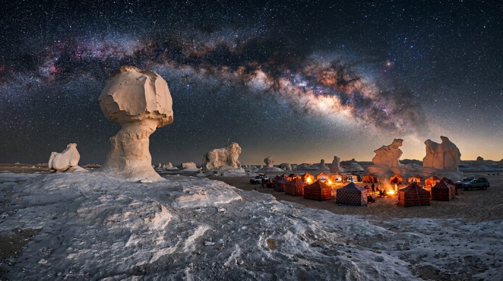 Getting There: The White Desert is located in the Farafra Depression, about 450 km from Cairo. Most visitors join organized tours from Bahariya Oasis (5-6 hour drive from Cairo).